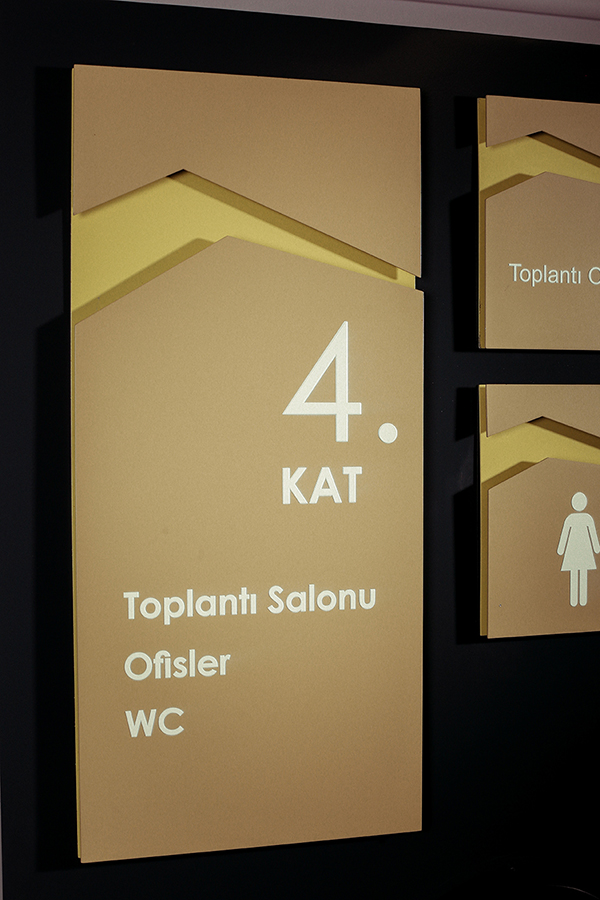Customize design wayfinding signages are products that are specially designed tor the space and structure they will be applied to, depending on the form, material, color, and perception they should create. These systems have become the choice of architects who consider every detail in their buildings since the time when their complementary effect on the identity of the place was noticed. it is aimed that customize design wayfinding systems, which offer countless options in material combination, will accompany building identities tor many years, taking into consideration the strength and manufacturability factors.